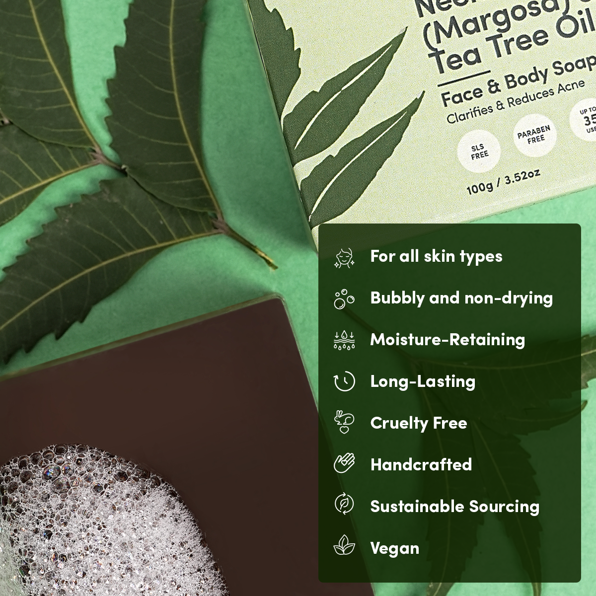 - Purifying and cleansing: Neem oil and powder have antibacterial and antifungal properties, which help to cleanse and purify the skin, making this soap an excellent choice for oily and acne-prone skin.